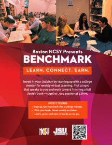 Benchmark is a project of Boston NCSY designed to give Jewish teens personal access to Torah learning in a way that’s flexible, meaningful, and consistent.